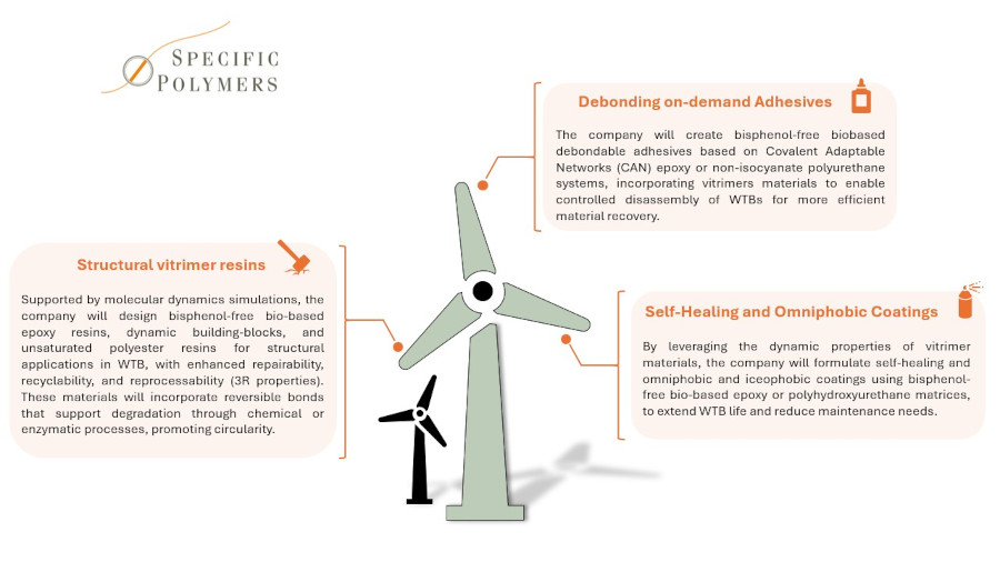 At BLADE2CIRC, we are dedicated to advancing the sustainability and recyclability of wind turbine blades. A key partner in achieving these goals is SPECIFIC POLYMERS, whose innovations in bio-based materials and advanced recycling technologies are helping shape the future of wind energy.